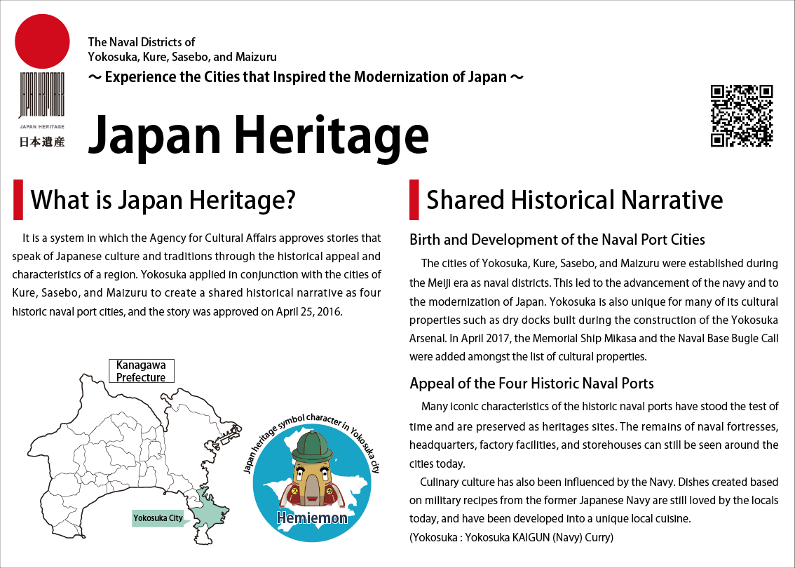 Japan Heritage Shioiri, Yokosuka-Chuo, Hemi Building C1, U.S. Fleet Activities Yokosuka Government building construction to convey the Taisho architectural style... Japan Heritage Shioiri, Yokosuka-Chuo, Hemi Building C2, U.S. Fleet Activities Yokosuka Government building which is rich in decoration and feels prestige of navy. Japan Heritage Shioiri, Yokosuka-Chuo, Hemi Building B39, U.S. Fleet Activities Yokosuka Earthquake-resistant building at the early Showa era which shows the eart... Japan Heritage Shioiri, Yokosuka-Chuo, Hemi JMSDF Yokosuka District Tadodai Residence Taisho 2, Kotaro Sakurai completed the design by the design director's of... Japan Heritage Hashirimizu, Kannonzaki, Otsu, Uraga Tokyo Bay Fortress Ruins The Army 's coastal boat group which defends capital Tokyo and Yokosuka m... Japan Heritage Hashirimizu, Kannonzaki, Otsu, Uraga kannonzaki and Hashirimizu Battery Ruins It is an armored group that protects the mouth of Tokyo Bay, the oldest m... Japan Heritage Shioiri, Yokosuka-Chuo, Hemi Tokyo Bay Artificial Island No. 3 Structure of the Third Kaifen (Image: Barracks in Umikaze Park), one of t... Japan Heritage Shioiri, Yokosuka-Chuo, Hemi Bricks carved with the seals “Yokosuka Arsenal” and “Yokosuka Shipyard” French standard domestic oldest brick red brick (on image: Yokosuka stain... Japan Heritage Oppama, Taura Shioiri, Yokosuka-Chuo, Hemi Kinugasa Hashirimizu, Kannonzaki, Otsu, Uraga Akiya, Sajima, Takeyama Kurihama Nagai, Arasaki Nobi, Nagasawa, Tsukuihama Park, open space Nature Museum, culture facility Warm bath, hot spring Outdoor, experience Famous place, histric site Others Japan Heritage Hiking Cource Page1/3