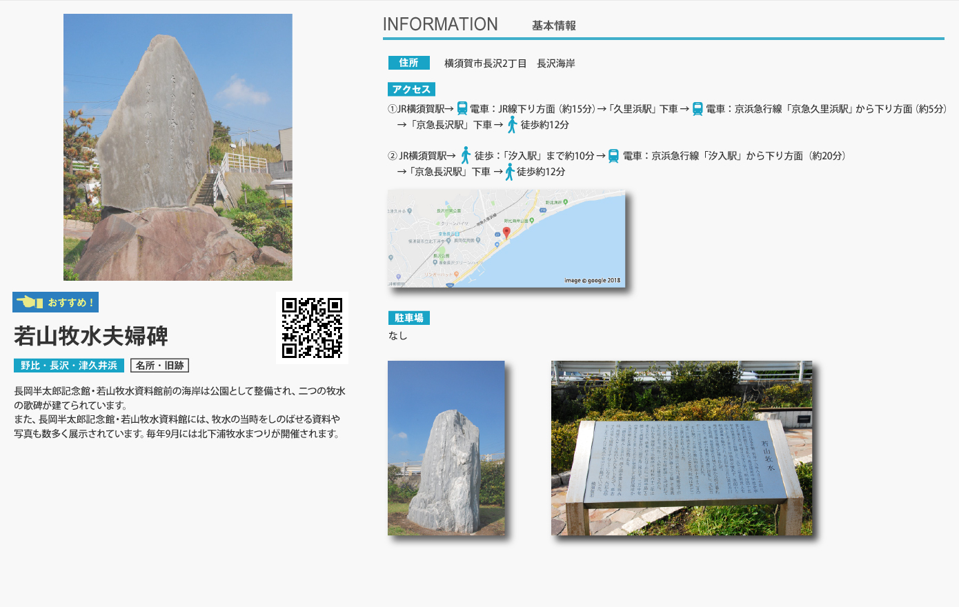 野比・長沢・津久井浜 追浜・田浦 汐入・横須賀中央・逸見 衣笠 走水・観音崎・大津・浦賀 秋谷・佐島・武山 久里浜 長井・荒崎 野比・長沢・津久井浜 公園・広場 自然 資料館・文化施設 温浴・温泉 アウトドア・体験 名所・旧跡 その他 日本遺産 ハイキングコース