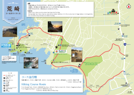 長井・荒崎 長井・荒崎 荒崎公園 自然が創造した美しい岩場が続く荒崎海岸。三浦半島屈指の海岸美が存分に楽しめます。 公園・広場 自然 長井・荒崎 熊野神社 土地の人が「ごんげんさま」と呼ぶ、長井全町の総鎮守です。7月15日の例祭日には「飴屋踊り」が奉納されます。 名所・旧跡 長井・荒崎 農産物直売所「すかなごっそ」 新鮮で安全・安心な農畜産物を消費者の皆様にお届けします。 その他 長井・荒崎 長井海の手公園 ソレイユの丘 相模湾、富士山、湘南を望む岬に広がる「長井海の手公園ソレイユの丘」。広い園内には、いろいろな体験プログラムがあり、ご家族で一日中楽しむことができます。 自然 アウトドア・体験 長井・荒崎 ソレイユの丘「海と夕日の湯」 露天風呂からは「富士山」や広大な太平洋の景観をお楽しみいただけます。 温浴・温泉 長井・荒崎 長浜海岸 水の透明度は市内の海岸の中でも指折りです。 広々とした砂浜は、のんびりとした雰囲気が漂い子供連れなどには最適です。 自然 アウトドア・体験 長井・荒崎 荒崎シー&サニーコース 長浜海岸~ソレイユの丘~荒崎公園をめぐるコースです。 ハイキングコースMAPは、こちらの二次元コードからダウンロードできます。 ハイキングコース 追浜・田浦 汐入・横須賀中央・逸見 衣笠 走水・観音崎・大津・浦賀 秋谷・佐島・武山 久里浜 長井・荒崎 野比・長沢・津久井浜 公園・広場 自然 資料館・文化施設 温浴・温泉 アウトドア・体験 名所・旧跡 その他 日本遺産 ハイキングコース Page1/1